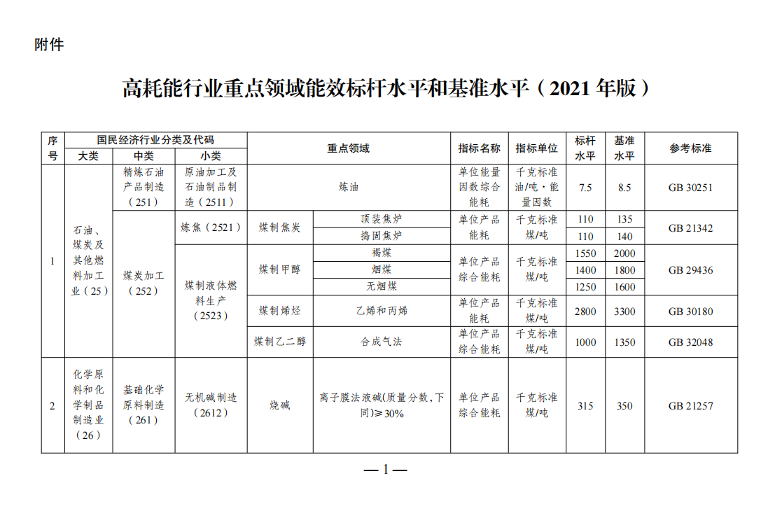 领域能效标杆水平和基准水平(2021年版)》的通知